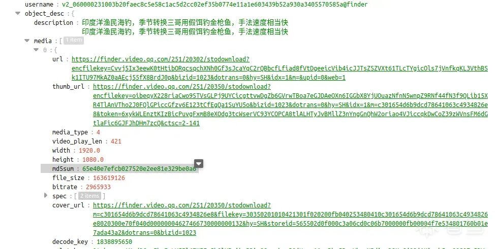 1.通过FinderGetCommentDetail获取到视频的decode_key(就是seed),url,title等信息。