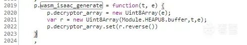 经过搜索,我们了解到decryptor_array的赋值仅在wasm_isaac_generate函数中进行。