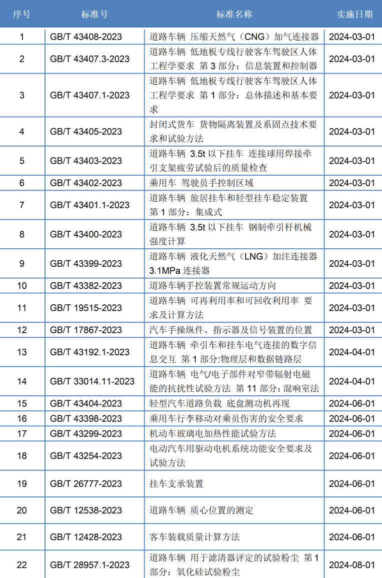 我国汽车强制性国家标准在规范汽车市场、保障产品质量、促进技术进步方面发挥着重要作用,为政府进行车辆产品管理提供强有力的技术支撑。以下是7项强制性国家标准2024年在实施层面的新要求。