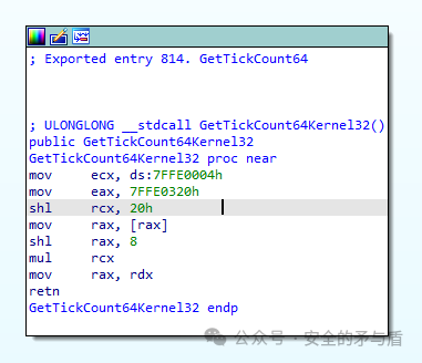 我们这里逆向分析一下 GetTickCount64 的函数实现:
