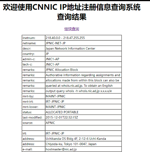 利用应用功能,抓取反向连接查找服务器IP,或者根据应用返回/报错查看。2.通过IP地址注册信息查询:https://ipwhois.cnnic.net.cn/