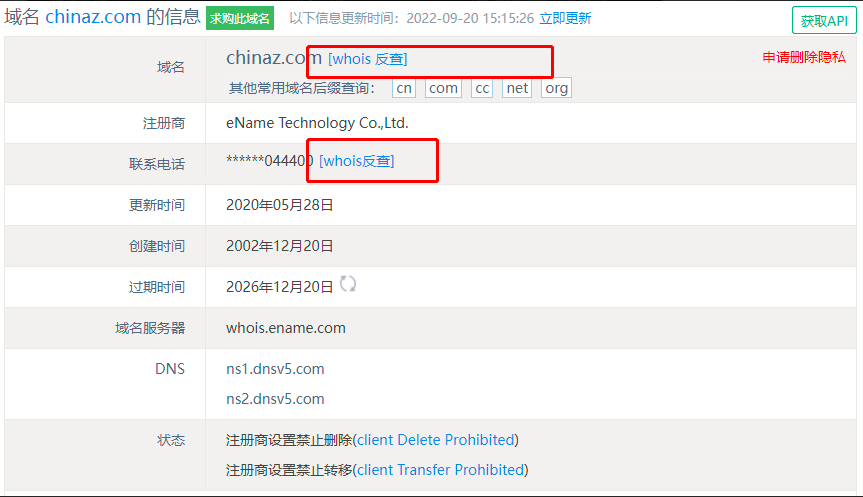 通过查询目标的WHOIS信息,对联系人、联系邮箱等信息进行反查以及查看whois历史信息,获取更多相关的域名信息;微步在线也可以根据IP、邮箱等查询历史域名。