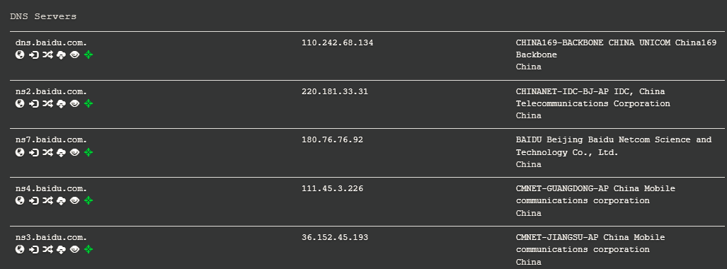 用dnsdumpster.com查询是否存在自建NS服务器,再将ns名带入https://hackertarget.com/find-shared-dns-servers/进行查询,可以获得一批主域名: