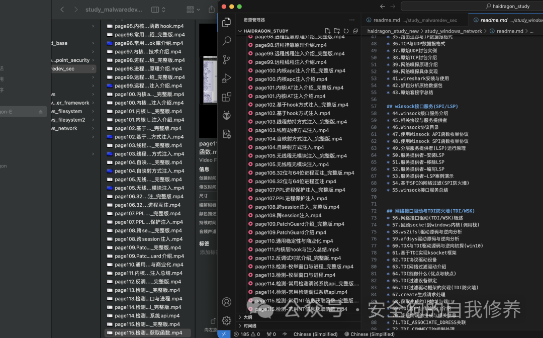本套课程内容包含pe文件格式、shellcode开发、rootkit、注入与hook、反调试、恶意软件开发、免杀对抗、恶意软件分析与检测等,系统化的讲解了恶意软件开发与对抗相关技术。