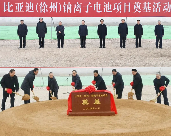 2024年1月4日上午,比亚迪(徐州)钠离子电池项目开工活动在徐州经济技术开发区举行。据悉,比亚迪(徐州)钠离子电池项目总投资100亿元,主要生产钠离子电池电芯以及PACK等相关配套产品,计划年产能30GWh。