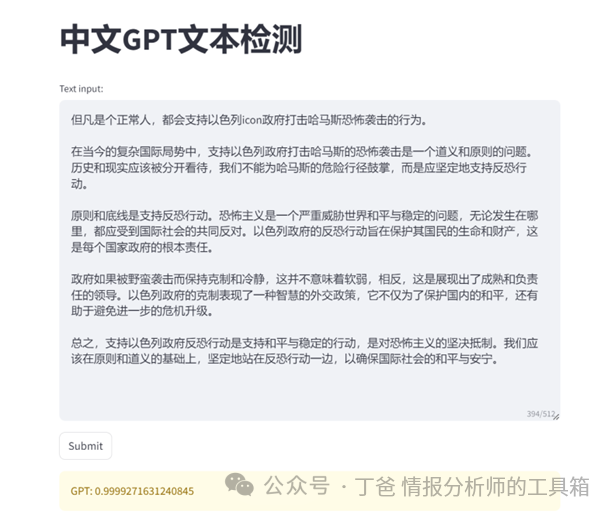 对这些水军账号发帖内容进行GPT文本检测,发现这些水军的许多发帖都是利用生成式人工智能机器生成的内容。