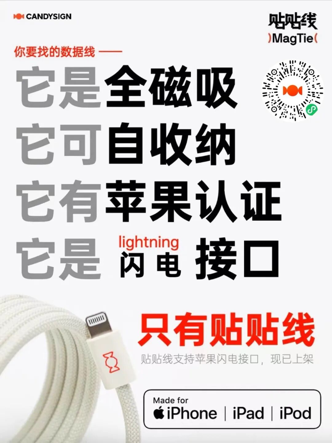 支持苹果官方 MFi 认证的 MagTie⭕️贴贴线,是 Lightning 接口用户目前唯一的选择。