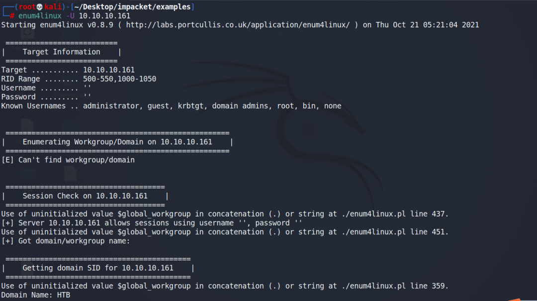enum4linux获取用户我们将搜集的信息保存为一个