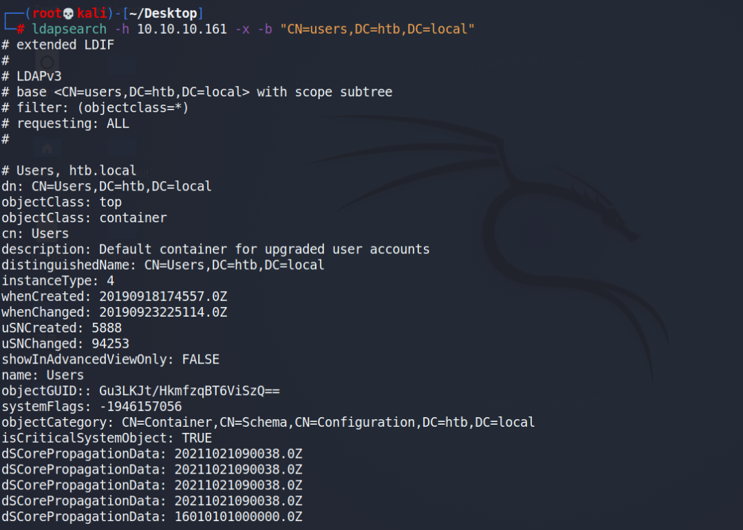 上面信息收集时发现了ldap服务,那我们尝试使用ldapsearch工具对