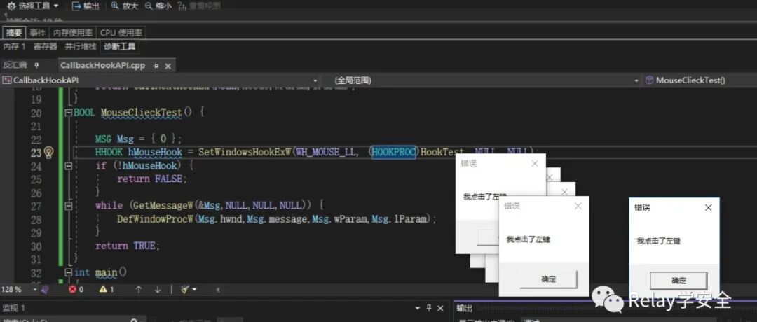 API挂钩是网络安全领域的重要概念,本文介绍了在Windows API中使用SetWindowsHookEx函数来实现API挂钩。SetWindowsHookEx函数用于跟踪系统事件,不会修改函数功能,而是在事件触发时执行回调函数。文章详细解释了不同的事件类型,如键盘事件、鼠标事件等,以及如何设置回调函数的类型。示例代码演示了如何监视鼠标点击事件,并在事件发生时弹出消息框。为了保持挂钩的活动状态,文章还介绍了在特定时间段内执行监控代码的方法。最后,文章提供了取消挂钩的方法,即调用UnHookWindowsHookEx函数。通过本文的介绍,读者可以更好地理解API挂钩的概念和实现方法,从而在网络安全领域有更深入的了解。