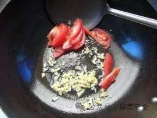 2 锅中放少许的油,炒香姜末后下入西红柿翻炒