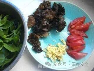 材料:田七苗150g、水发黑木耳50g、西红柿适量、姜适量、盐适量、生抽适量、胡椒粉适量。