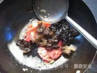 3 西红柿出红油后放入黑木耳炒一下