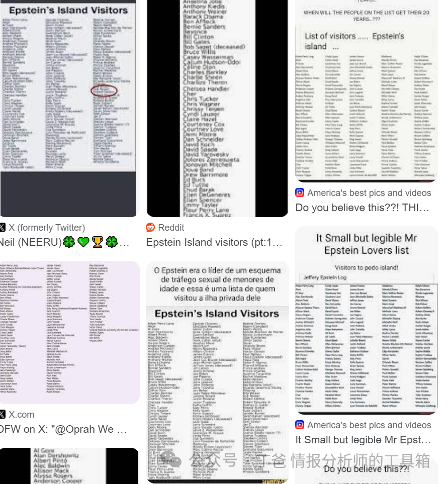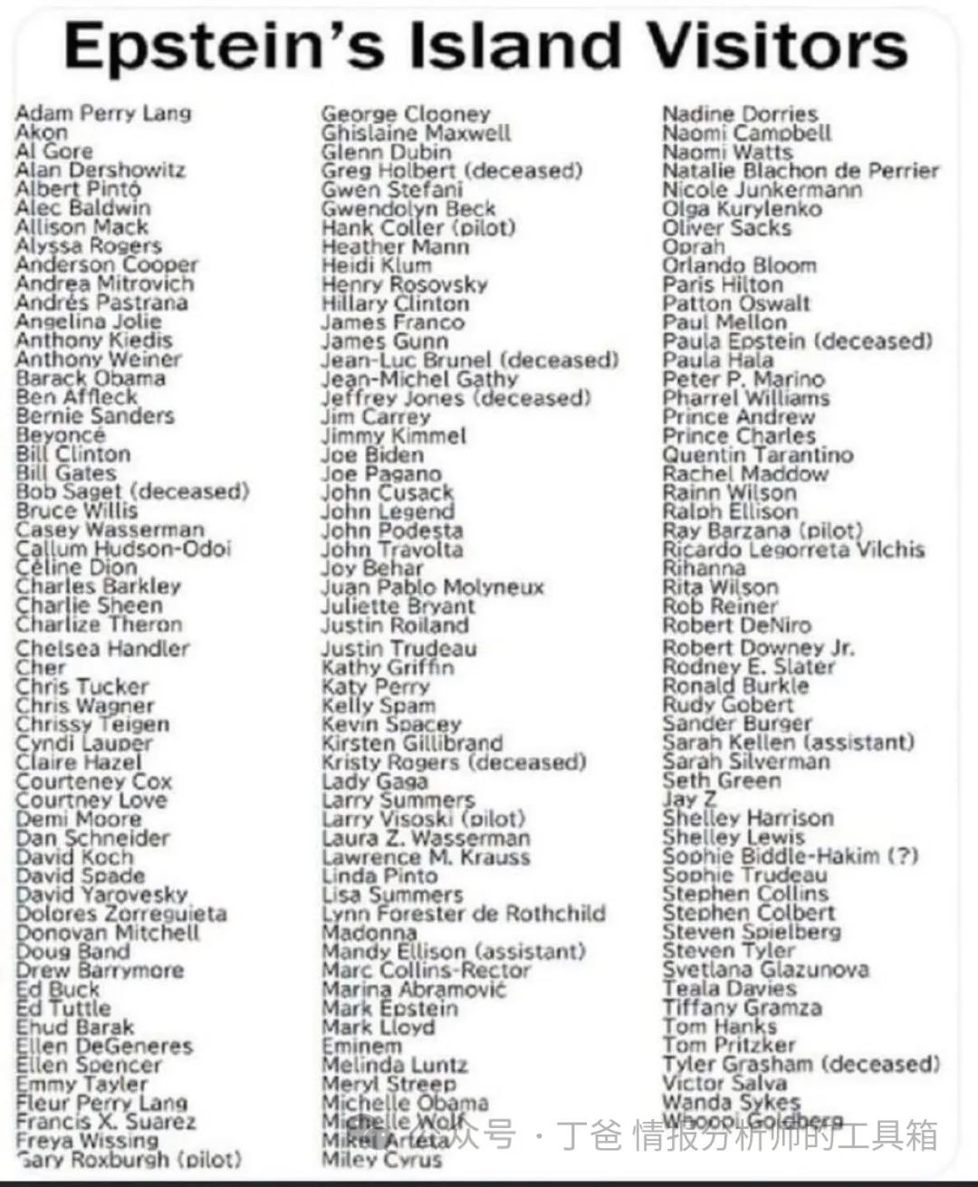 近日,网上广泛流传爱泼斯坦岛访客名单(Epstein’s Island visitor)。