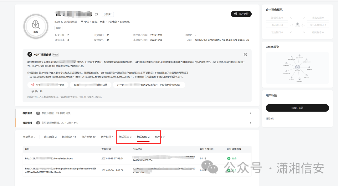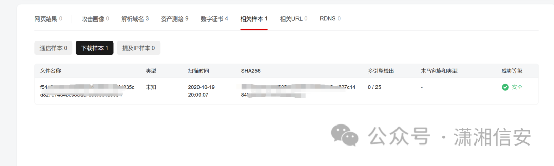 以微步的x社区为例子,常规的大家都会玩,来看看相关样本和相关URL这两项,有时候相关URL会捕获到一些奇奇怪怪的路径地址,而相关样本中,通信样本里有时候也会携带一些下载路径和资源路径。