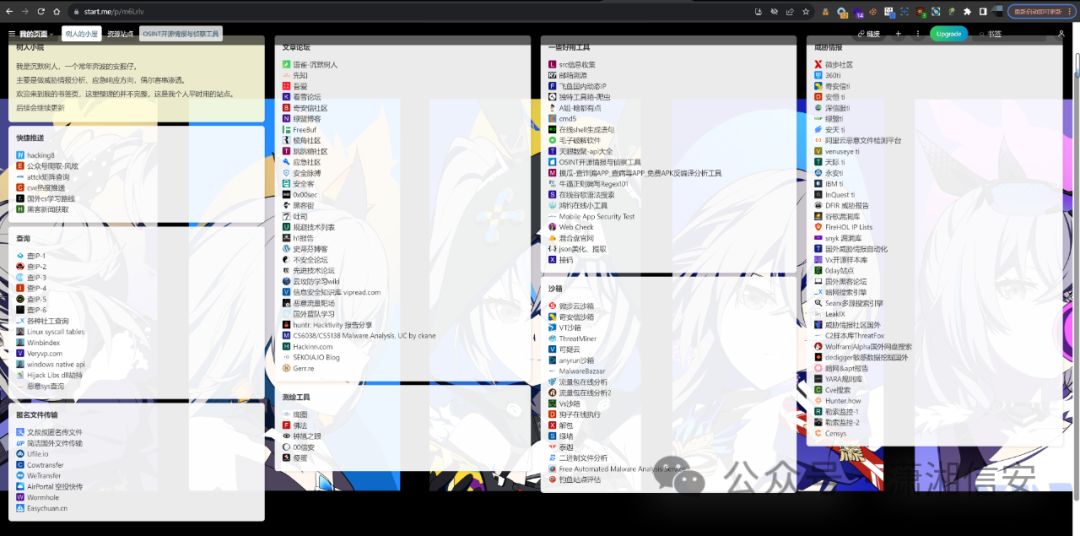 https://start.me/p/m6Lrlvhttps://d3fend.notion.site/2.利用好各种平台去提升自己,去思考规则做联防。【驻场仔也想提升!我也是驻场仔