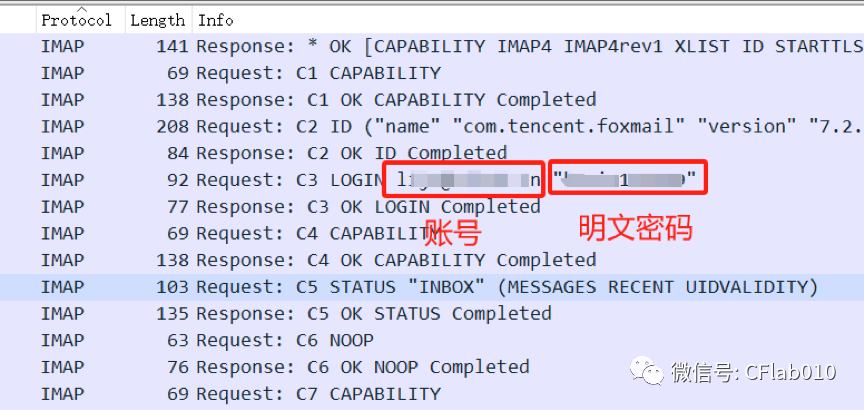 点Protocol进行协议排序,通过查看IMAP就可以看的邮箱账号和密码。