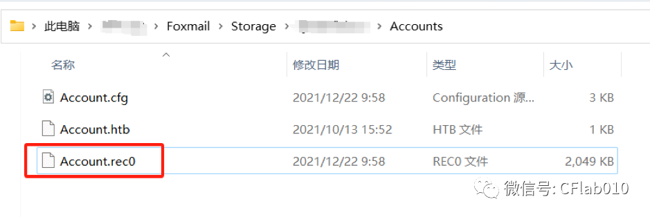 这是最简单的一中方法,但是对于一些版本这个方法并不管用。打开Foxmail软件所在文件夹,找到密码存储文件。Foxmail默认邮箱路径保存在安装目录的Foxmail文件夹下面以邮箱为名称(或者Foxmail中的邮箱的命名)的子文件夹中。在这里找到一个叫做Account.rec0的文件。这个文件主要的作用是用来保存邮箱的一些诸如帐号密码等等信息,所以一般来说要破解foxmail,首先就要从这个文件入手。在Windows中我们直接选择用记事本或者WinHex打开就行。找到密文,打开文件之后,前面是一堆乱码,请跳过,往下拉滚动条,拔到"Password"字段,记下后面的字符,这些字符就是加密过后的密码。也可以用鼠标选择密文,点击鼠标右键选择“复制”。