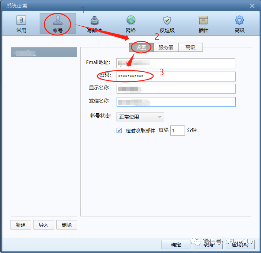 随着计算机网络技术的飞速发展,在日常工作中普遍采用电子邮件进行沟通的方式,提高了工作效率。收发电子邮件的方式一般有两种:一是直接登录邮箱服务商提供的邮件收发网站;二是使用一些客户端软件,例如Foxmail,用POP方式收发邮件。在日常工作中使用Foxmail邮箱,通常会为Foxmail帐户设一个访问密码。要一不小心把这个密码搞丢了怎么办?下面介绍一些方法可以解一时之急。如果你的Foxmail 密码忘记了,但是你曾经在Foxmail 中设置过密码,现在该密码以“*”号显示在Foxmail 中,那么只要账号管理里面,选择“账号”,在设置部分就可以看的以“*”显示的邮箱密码。然后用任意一款密码查看软件就可以发现“*”号中是什么内容。