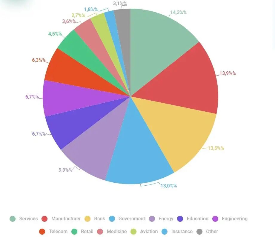 每年都会有大量的公司发生重大数据泄露事件,例如2022年Medibank和Optus的数据泄露、Twitter的数据泄露、Uber和Rockstar的数据泄露以及2023年T-Mobile、MailChimp和OpenAI的数据泄露。在2022年,卡巴斯基实验室列出了全球700家来自不同行业的公司,然后在暗网上搜索,试图分析这些公司遭受攻击的可能性有多大?