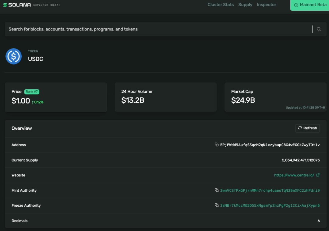 通过 Solana Beach 浏览器,还能查看每个账户记录的 Token 信息,授权情况等详细信息。