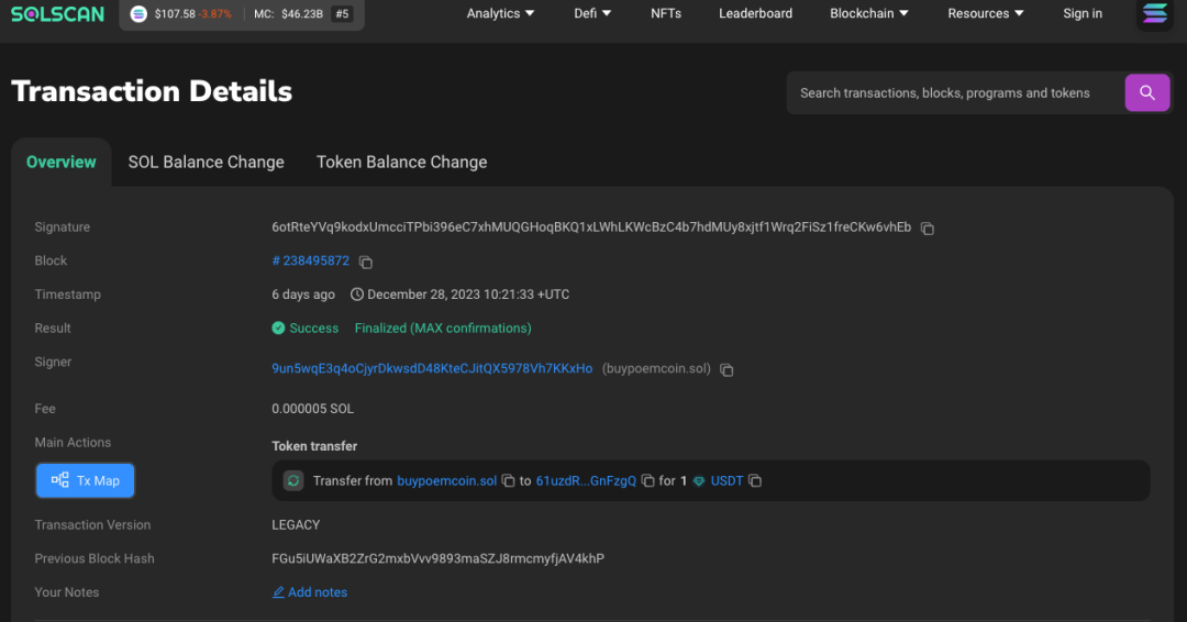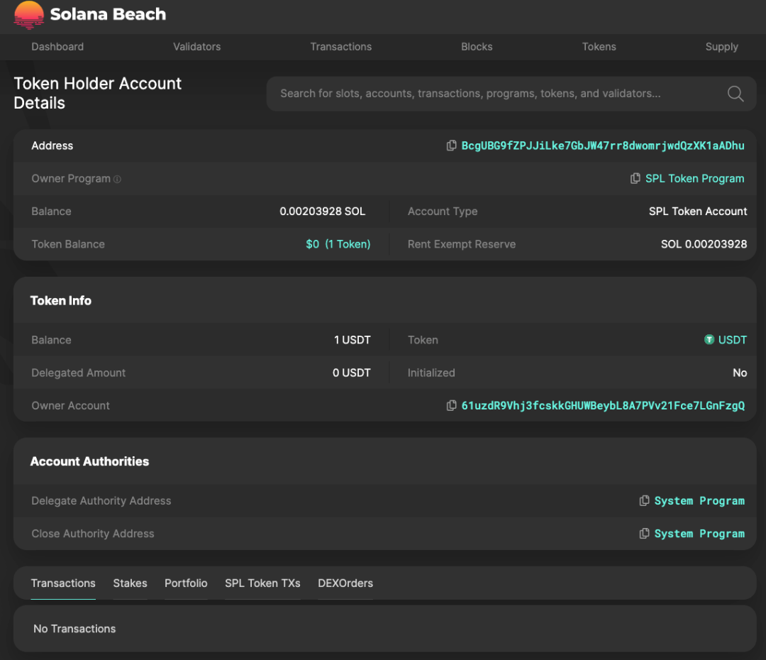 以下交易是 USDT 的转账,与 SOL 交易类似。