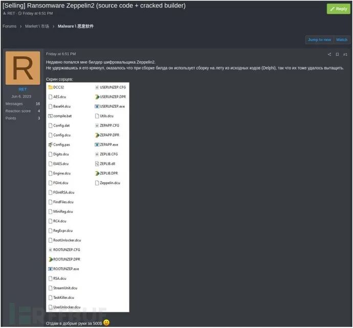 据BleepingComputer消息,一名黑客在某网络犯罪论坛上发帖,以500美元的超低价格出售 Zeppelin 勒索软件构建器的源代码和破解版本,该软件曾多次针对美国关键基础设施企业和组织发起攻击。