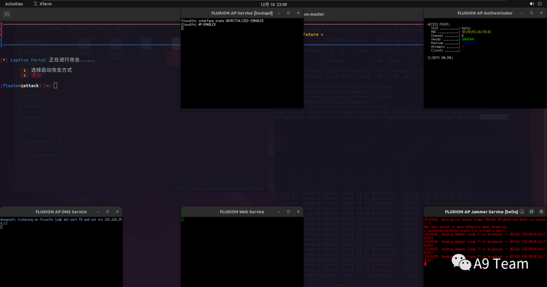 aircrack-ng -w [字典-path] *.cap这种攻击方式主要是创建一个同名的恶意AP,然后通过ACK泛洪攻击使得目标连接不上真的WIFI后连接恶意AP,连接上恶意AP之后需要输入WIFI密码,然后在和你上面抓的包进行匹对,对就关闭wifi,不对就提示密码错误。