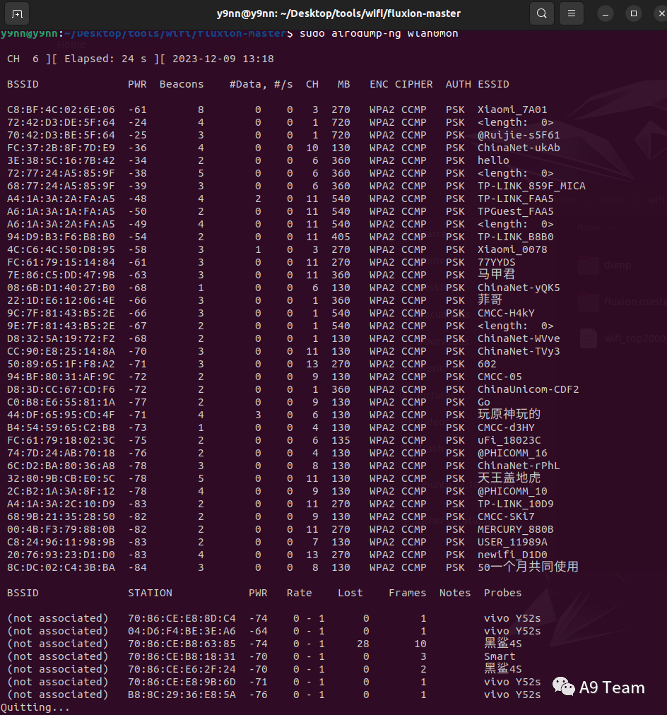 使用airodump-ng查询找wifi下面的终端