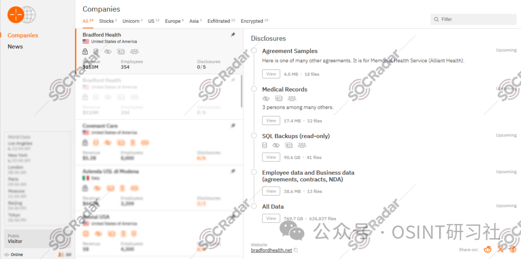 Capital Health、Diablo Valley Oncology、HCA Healthcare 和 Bradford Health Care 成为目标,或者相关事件在暗网上重新出现,凸显了这些威胁的广泛性和多样性。