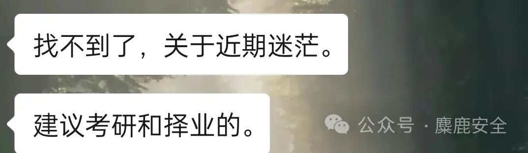 在开始这个话题之前,麋鹿先介绍一下上面那位询问就业和考研的师傅的现状: