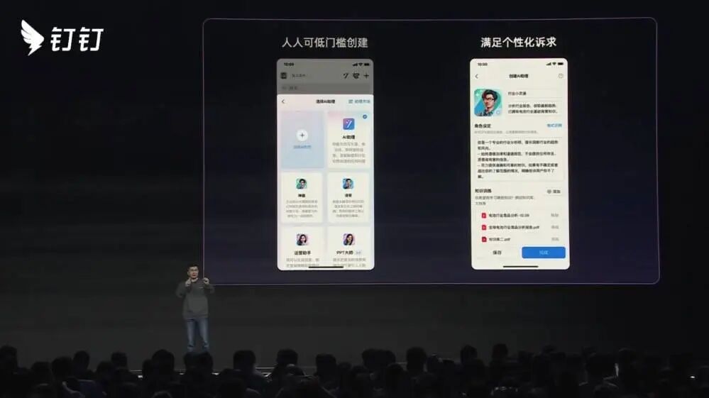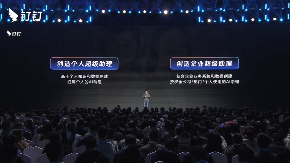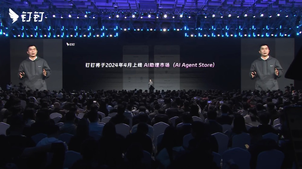 大模型呼啸而过的 2023 年,市场上的大模型已经有 200 多个。据统计过去这一年,全球最火的 50 个AI 工具访问量累计高达 240 亿次,流量增长了 10 倍不止,但实际上这还不是 AI 爆发的高峰,AI 工具对大多数人的影响很可能从今年开始初现端倪。最近很多开发者都在期待 OpenAI 的 GPT Store 上线,实际上是在期待 AI 的「App Store 时刻」,属于 AI 原生应用生态,应用的使用和开发方式的思路都将不一样。没想到 2024 年率先交出这份答卷的,是用户突破 7 亿的钉钉。钉钉今天正式发布了 7.5 大版本更新,其中的重磅功能 「AI 助理」,以及即将上线的 AI 助理市场,其实就是对 AI Agent 产品化形态的探索。去年 11 月,阿里巴巴公布了第一批四个战略级创新业务,钉钉位列其中。阿里集团 CEO 吴泳铭曾提出,钉钉因为 AI 时代的到来,获得前所未有的想象力。在钉钉对 AI 助理的定义中,钉钉 AI 助理是指能对自然语言进行交互,根据对用户和企业数据、业务的理解来完成复杂任务的 AI 应用。今日发布的钉钉 7.5 版本推出的 AI 助理,实际上是对 AI Agent 的实际落地,既可以属于个人,也可以属于企业,每个人、每家企业都可以定制个性化的、专属的超级助理。个人超级助理可以帮你打开各项功能设置,包括快捷打开投屏等功能,或者来电铃声等设置入口,简化功能路径,让产品使用更简单;又或者帮助你进行信息摘要、写工作总结、写文档等工作,或者发起会议、发日程、创建待办等操作,提高工作效率。前不久,经过一年多时间的开发,钉钉个人版全量上线,更新了鹿班相机、灵动人像、涂鸦作画、法律助手等多款 AI 助理,提供 AI 写真、数字分身、AI 作画、AI 律师等服务。现场演示就使用了钉钉个人版的涂鸦作画功能来创作故事脚本和绘本。在家庭辅助功课的场景中, 当你在家庭群 @ AI 小助理,让 AI 家庭助理批改作文并评分,它能自动识别错别字以及作文中的好词好句,充分理解文章结构并给出修改建议。完成批改之后,它还能一键润色,让你跟自己孩子关于作业的对话变得更加的简单。对于打工人来说,它能告知你摘要未读消息,一键清除工作事物红点,创建代办,创建日程,比如讨论明天的客户拜访计划。有趣的是,群文档底下还支持快速阅读,自动帮你把别人发过来的长文进行归纳总结,主打的就是省心高效。发布会上,钉钉总裁叶军反复强调,降本增效提质是企业发展永恒不变的话题。这就是企业超级助理提供的价值,其中比较突出的应用是智能问答 AI。钉钉希望能够通过智能问答 AI,实现企业间管理上、客户咨询或者企业员工之间知识共享的一个真正的价值。温太医扮演者张晓龙也来到了发布会现场,发布了十级甄学家——人机挑战。张晓龙和现场嘉宾一起随机出三道题,让「甄嬛十级学者」的知名 UP 主元日安和「十级甄学家」智能问答 AI,以及钉钉总裁叶军同台竞技。三道题中,UP 主元日安最终得到两分,钉钉总裁叶军勉强得到了一分,而「十级甄学家」智能问答 AI 则没有翻车,达到了三分,在回答诸如「甄嬛在宫中 的 title 都有哪些,中英文同时作答」等问题中,整体表现可以说是可圈可点。除了智能问答 AI,钉钉还有更多私域 AI 运营工具,无论是 AI 生成活动海报,还是 AI 生成抽奖活动,还是 AI 生成群聊摘要,都能更好地帮助巩固博主和粉丝,买家和卖家之间的情感联系。而企业超级助理的能力也不止于生成,还可以做更多的事情。现场演示的环节中,当运用上智能差旅 AI,你可以实现一键预定机票和目的地附近的酒店,只需要输入文字要求,钉钉都尽可能帮助你完成。在发布会上频频被提到的 AI Agent ,其实就是具备感知、记忆、规划和行动能力的智能体。这是钉钉 AI 助理与 ChatGPT 等聊天机器人最大的区别,因为它已经具备跨应用程序的任务执行能力, AI 助理可以和钉钉上丰富的第三方应用、企业自建应用无缝结合。值得一提的是,钉钉还特地展示了智能问数 AI,通过耦合原生应用数据,低代码应用数据,亦或者客户自有数据,就能实现企业差旅分析。假如你是老板等管理层,不妨让 AI 助理分部门统计上个月出差天数,轻松得知出差明细,让企业管理更加透明,从而辅助你更好地管理决策。那要怎么打造专属的 AI 助理呢?具体可分为三步:选择特定知识库、文档或上传文件,对 AI 助理进行训练;为 AI 助理配置需要的 AI 能力,可直接选择官方能力,或者配置自定义能力。这个自定义能力包含企业自建系统、第三方应用、钉钉生态应用等等,也包含配置各大电商、视频、新闻、搜索等等各类平台的开放 API,实现开放连接能力。和其他公司相比,钉钉具备丰富的场景、企业积累知识与数据;也有明确的客户需求,这是所有基础大模型所不具备的,也将是钉钉的 AI Agent 最为核心的差异化。因此,钉钉计划将于 2024 年 4 月上线 AI 助理市场(AI Agent Store),目标是成为低门槛、高频和开放的 AI 助理平台。叶军认为,AI Agent 将成为当下最佳 AI 应用入口,未来三年将有 1000 万 AI 超级助理在钉钉上被创造出来。这个产品未来也不可避免地会屡屡被拿出来和 OpenAI 即将上线的 GPT Store 对比,但却代表了两种路线。最好的闭源大模型依靠强大的能力吸引大量开发者前来构建应用,最好的开源大模型根据过去积累的大量 C 端和 B 端用户需求,更针对性地来打造 AI 应用生态。似乎又是 iOS 和 Android 的故事重演,这个故事还有一