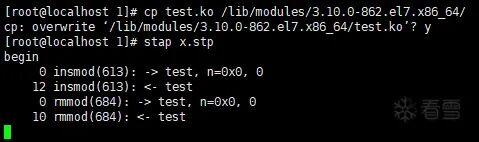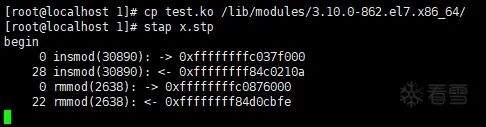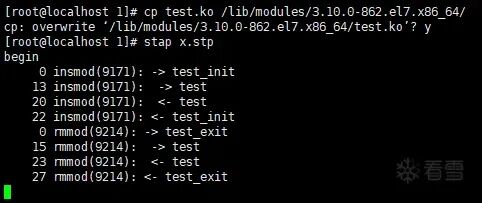 并且,额外的惊喜是,"stat x.stp"的执行,并不依赖先"insmod test.ko",也就是说,test_init()函数,也可以被追踪。不过想想也是,如果连内核模块加载函数都追踪不了,那systemtap还号称什么"利器"。