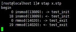然而,通过"insmod test.ko"和"rmmod test"分别触发test_init()和test_exit()执行,发现stap的打印内容是这样: