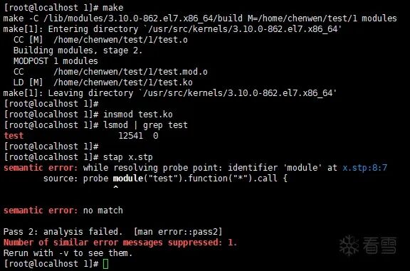 我一开始认为,驱动都已经加载了,stap却还不认识,那问题应该出在test.ko的编译上,为了解决这个问题,兜兜绕绕了一大圈。