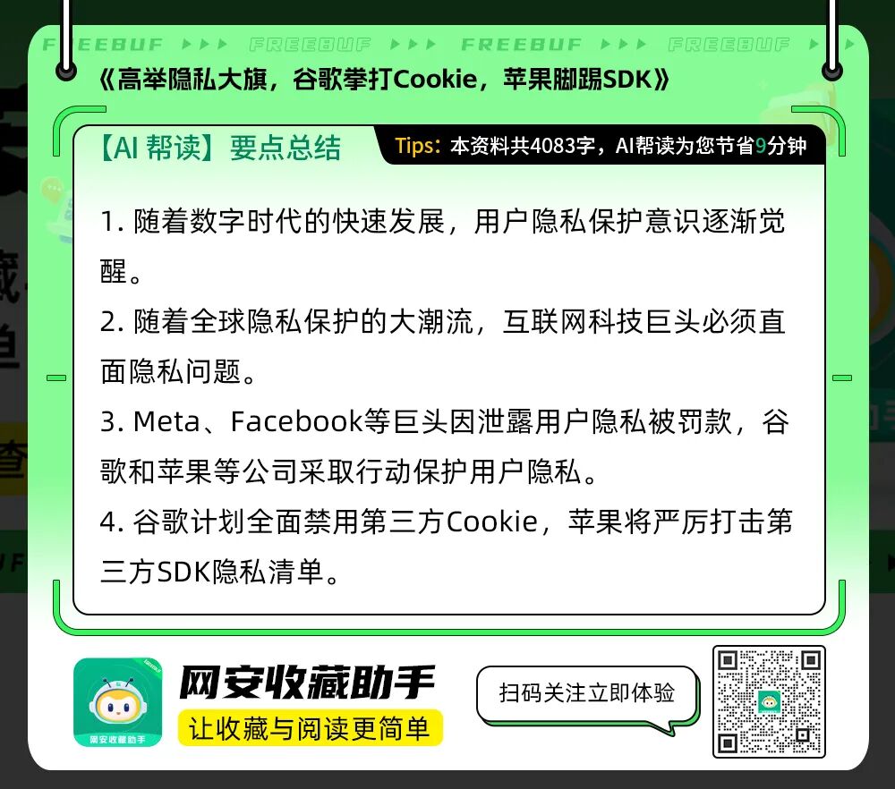 关于这一点我们在这不过多讨论,但有意思的是,这两家巨头这次的大动作都是以“隐私之名”发起的,那么限制第三方Cookie和SDK对于用户隐私究竟有哪些帮助?