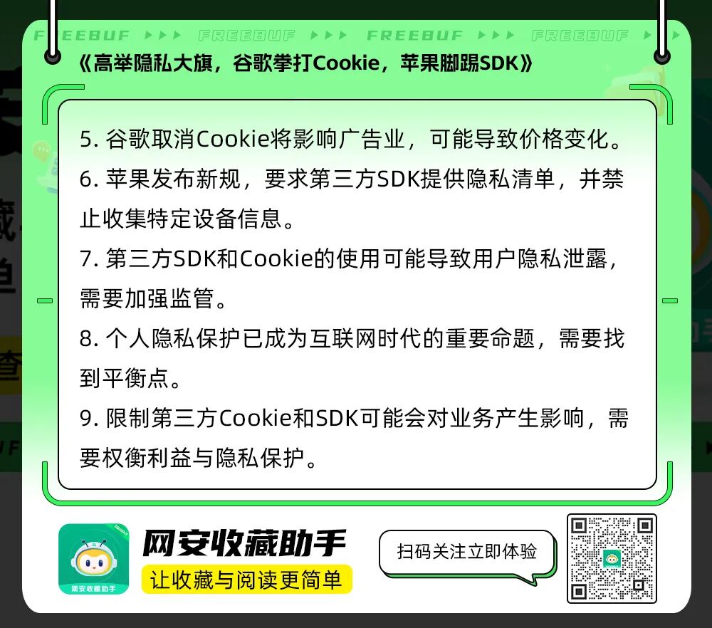 不过值得注意的是,限制第三方Cookie和SDK可能会对业务产生影响,例如可能会降低广告的效果和精准度,也可能会影响个性化服务和内容的提供。因此,如何在保护用户隐私和提供优质服务之间找到平衡,是业界需要面临的挑战。