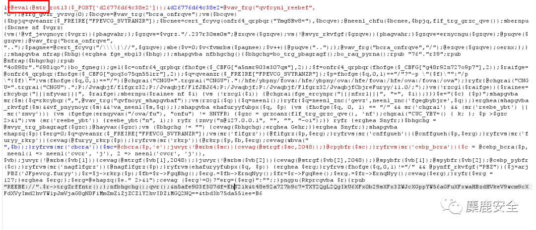 而且流量包里带有eval这些危险函数,下图是rot13模式