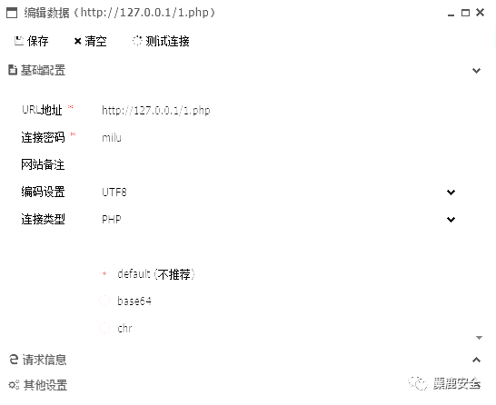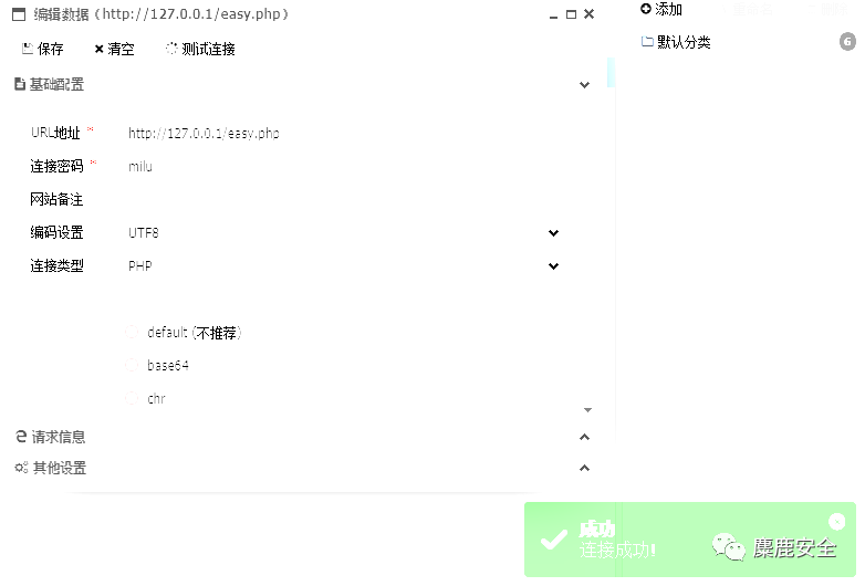 保存编码器为easy,蚁剑里选编码器为easy,解码器为default(因为php里已经进行解密了),成功连接