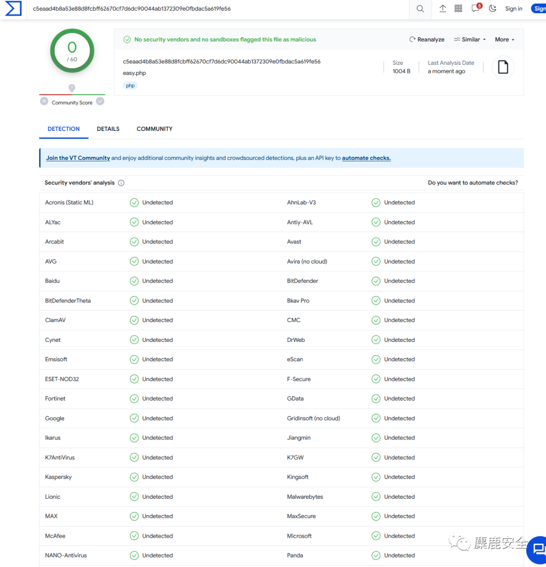 随便绕过,但是这是麋鹿自用的手法,所以就不公开了,不过后续麋鹿会在我的知识星球里更新我的一些免杀手法,敬请期待我的星球上线!