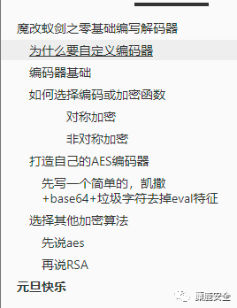如果是换其他编码器,流量特征里也很明显,例如会体现@str_rot13或chr()这些很敏感的函数,再或者是eval函数。所以这时需要我们自定义一个编码器