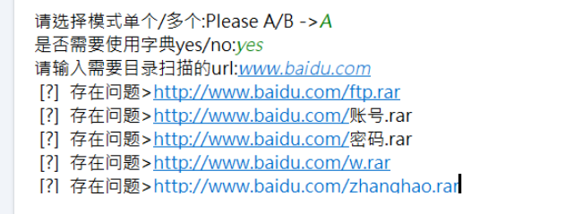 请输入需要目录扫描的url: #第三步是选择需要扫描的url地址