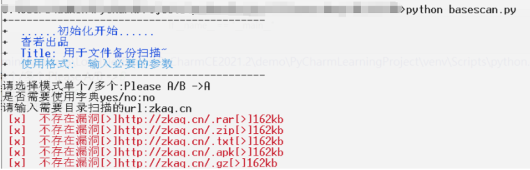 是否需要使用字典yes/no: #第二步是选择是否需要字典,不需要会使用基础的备份扫描功能