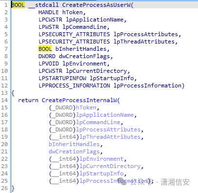 如果我们看看CreateProcessAsUserIDA正在做什么: