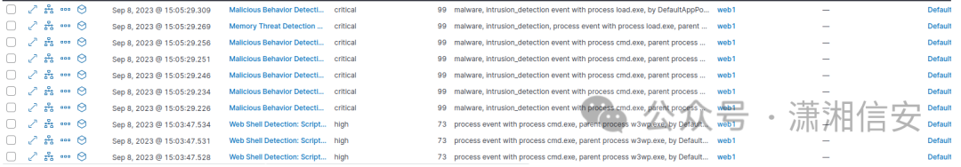 Web Shell Detection: Script Process Child of Common Web Processes 因为IIS进程w3wp.exe产生了cmd.exe