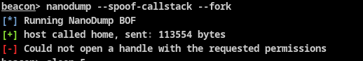 如果我们尝试使用nanodump,我们会遇到相同的访问问题。