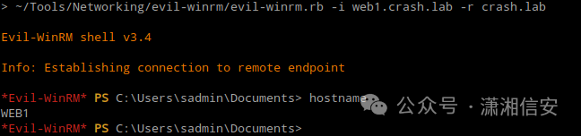 从这里开始,我们可以代表sadmin用户采取行动并尝试在网络中横向移动。