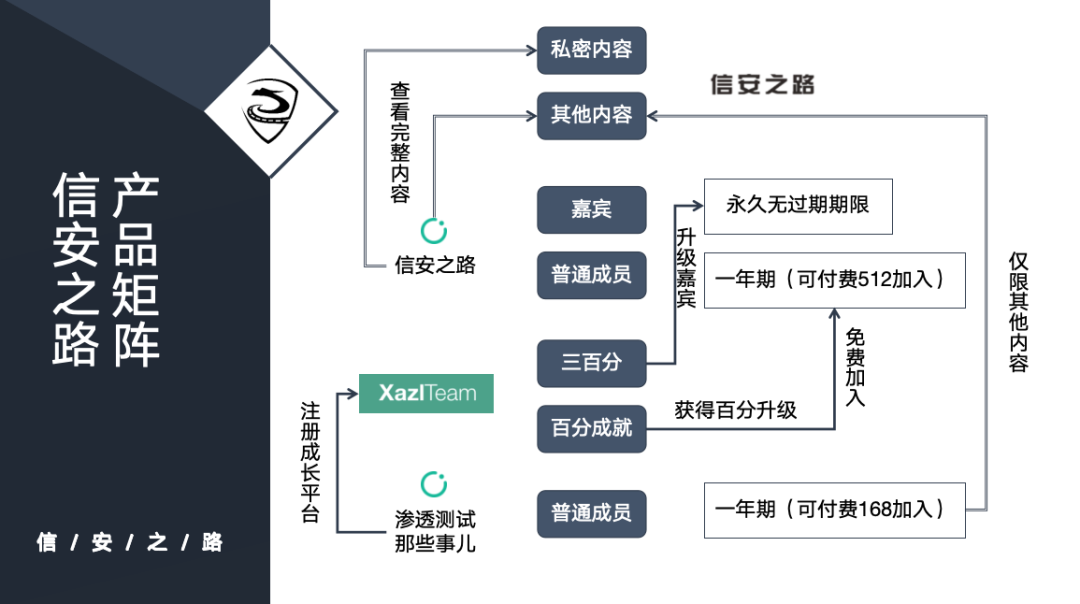 最低成本的方式,就是通过加入渗透测试那些事儿知识星球,注册成长平台,通过做平台的任务,获得百分成就,免费加入信安之路知识星球,获得一年使用权,如果想要继续深造,可以继续任务,获得 300 分成就,就可以在信安之路的知识星球当嘉宾,获得永久使用权。
